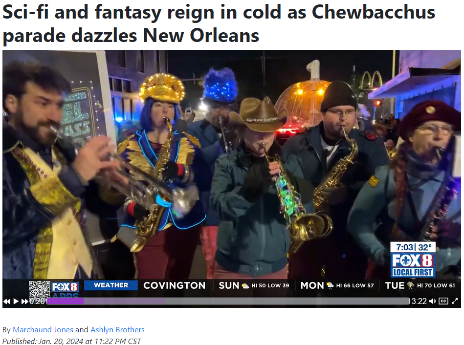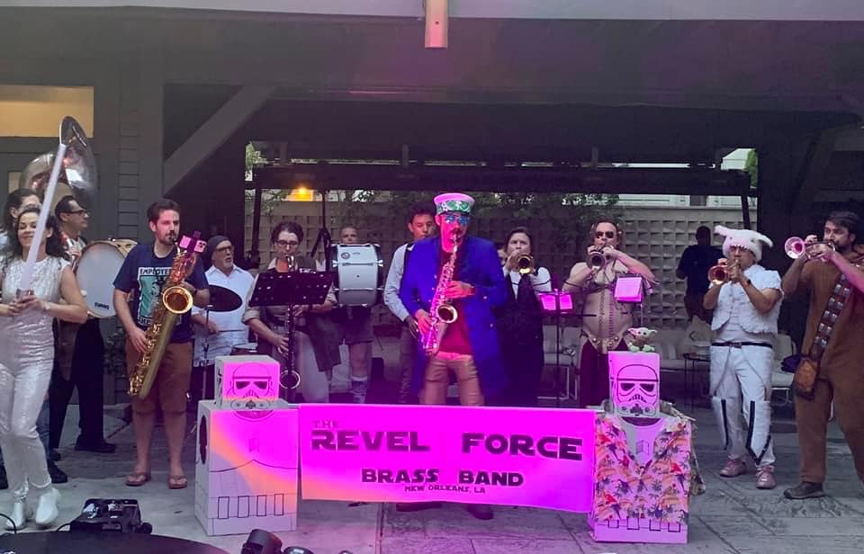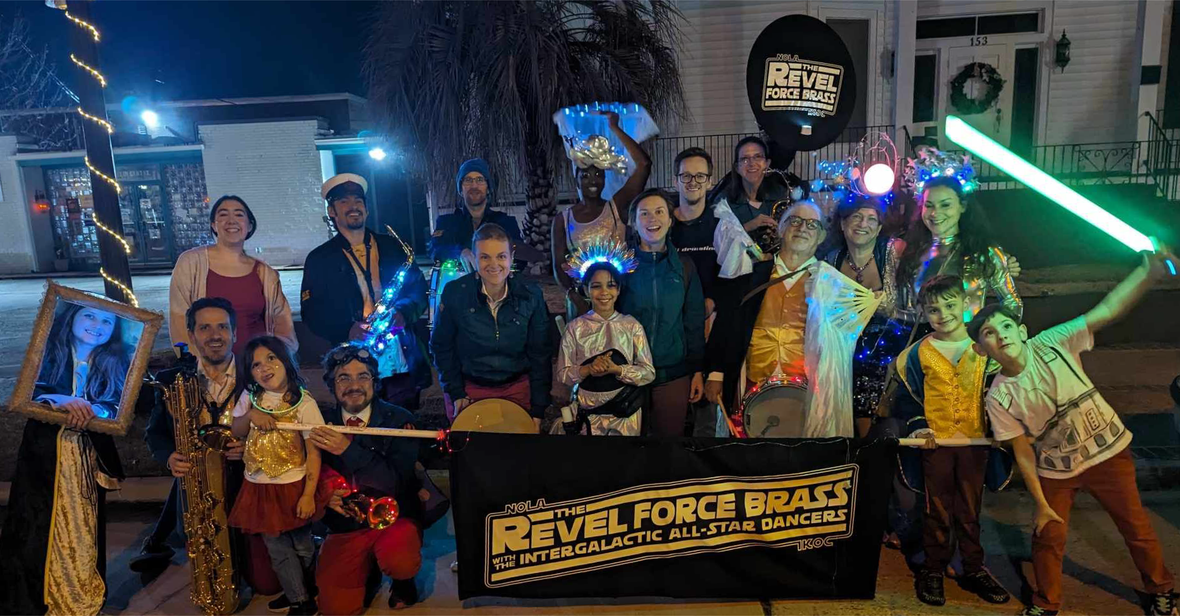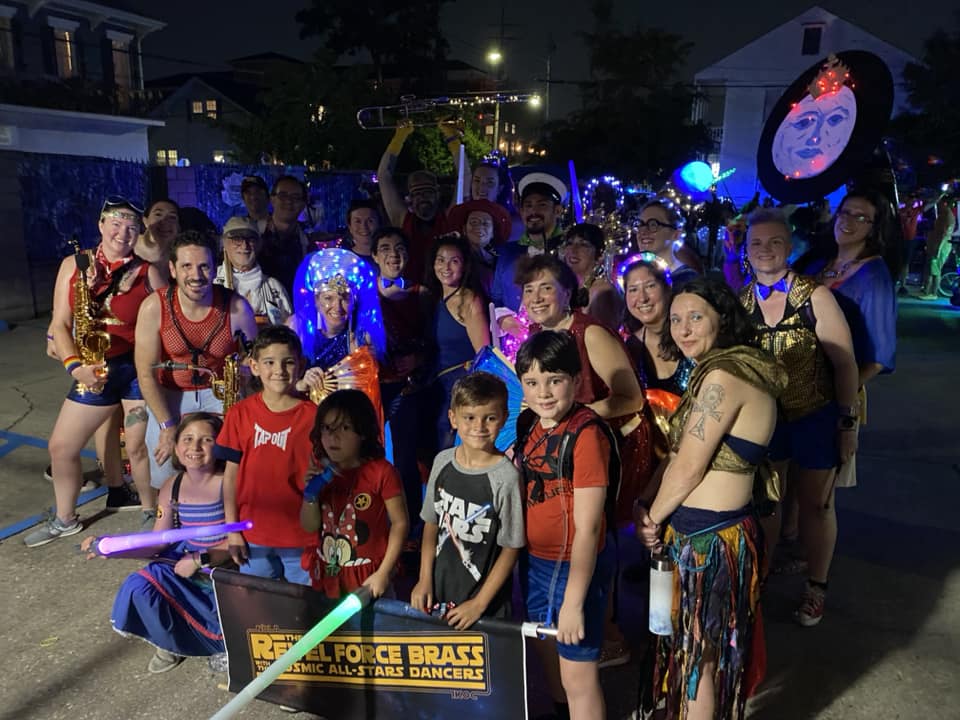 Welcome to the home of a community band and dance team which serves as The Royal Heraldry of the Intergalactic Krewe of Chewbacchus, as well as the Krewe Du Fool, The …And Bolyns of Krewe Mosaique, Krewe Boheme, The Mona Lisa Moon Pie Parade, and San Fermin en Nueva Orleans. We strive to be harbingers of joyous sight and sound wherever it can do battle against the negative energies permeating this world.